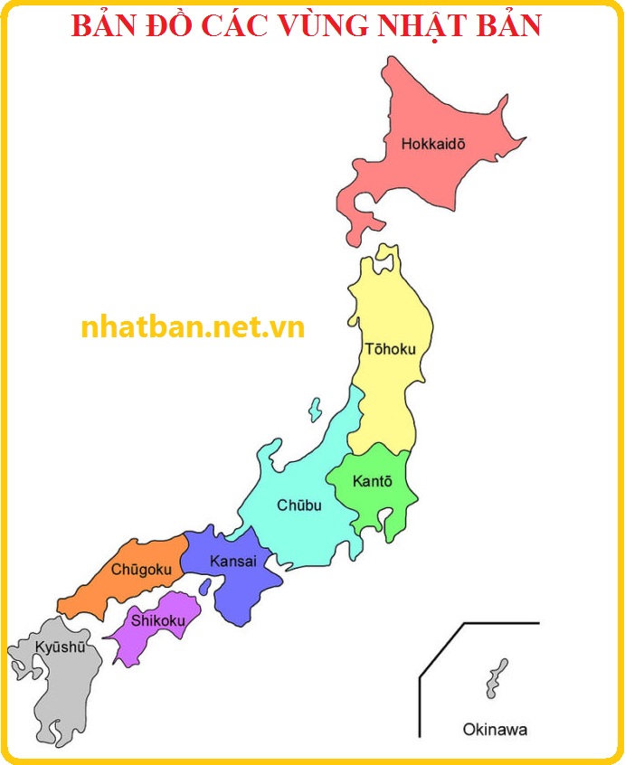 Nhật Bản chia làm 8 vùng địa lý, gồm: Hokkaido, Tohoku, Kanto, Chubu, Kinki (Kansai), Chugoku, Shikoku, Kyushu và Okinawa.